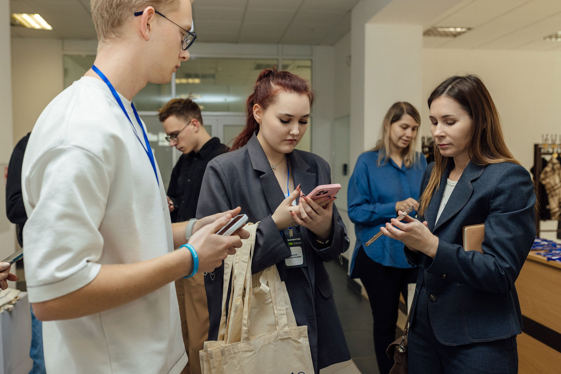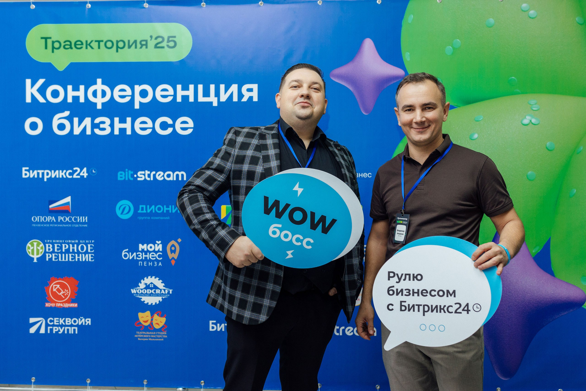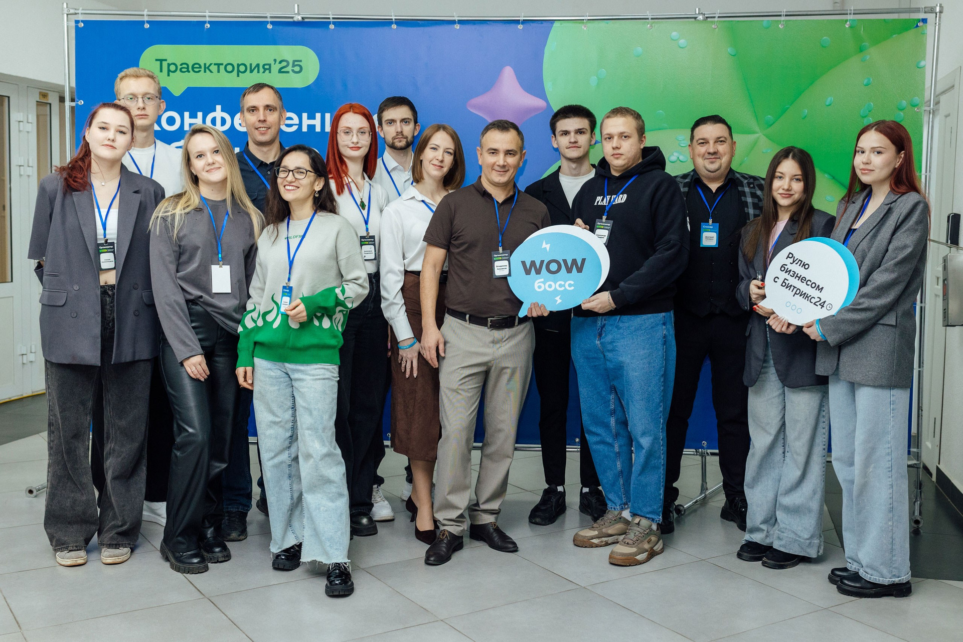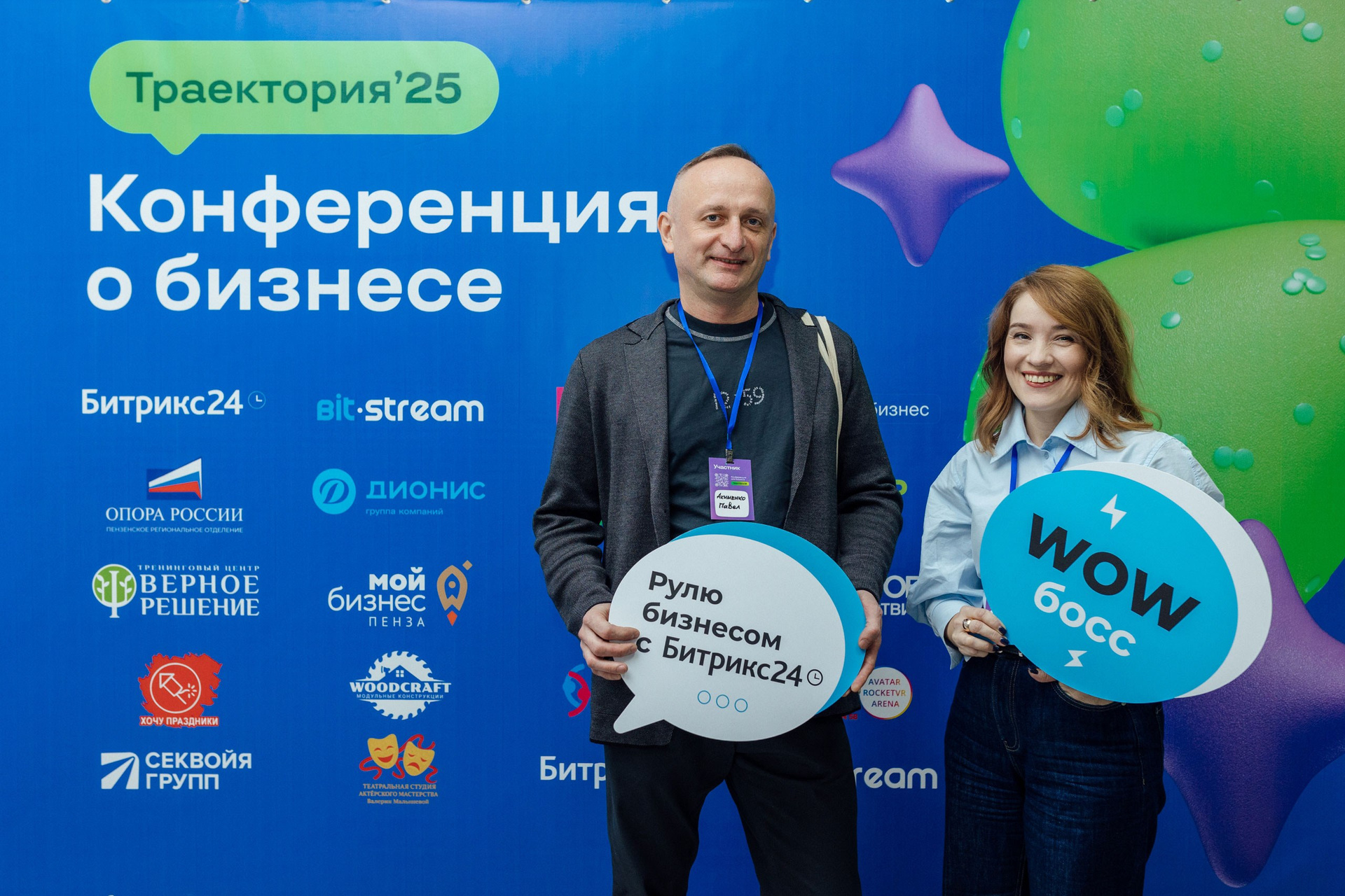 - фото участников на фоне фотозоны или пресс-волла.