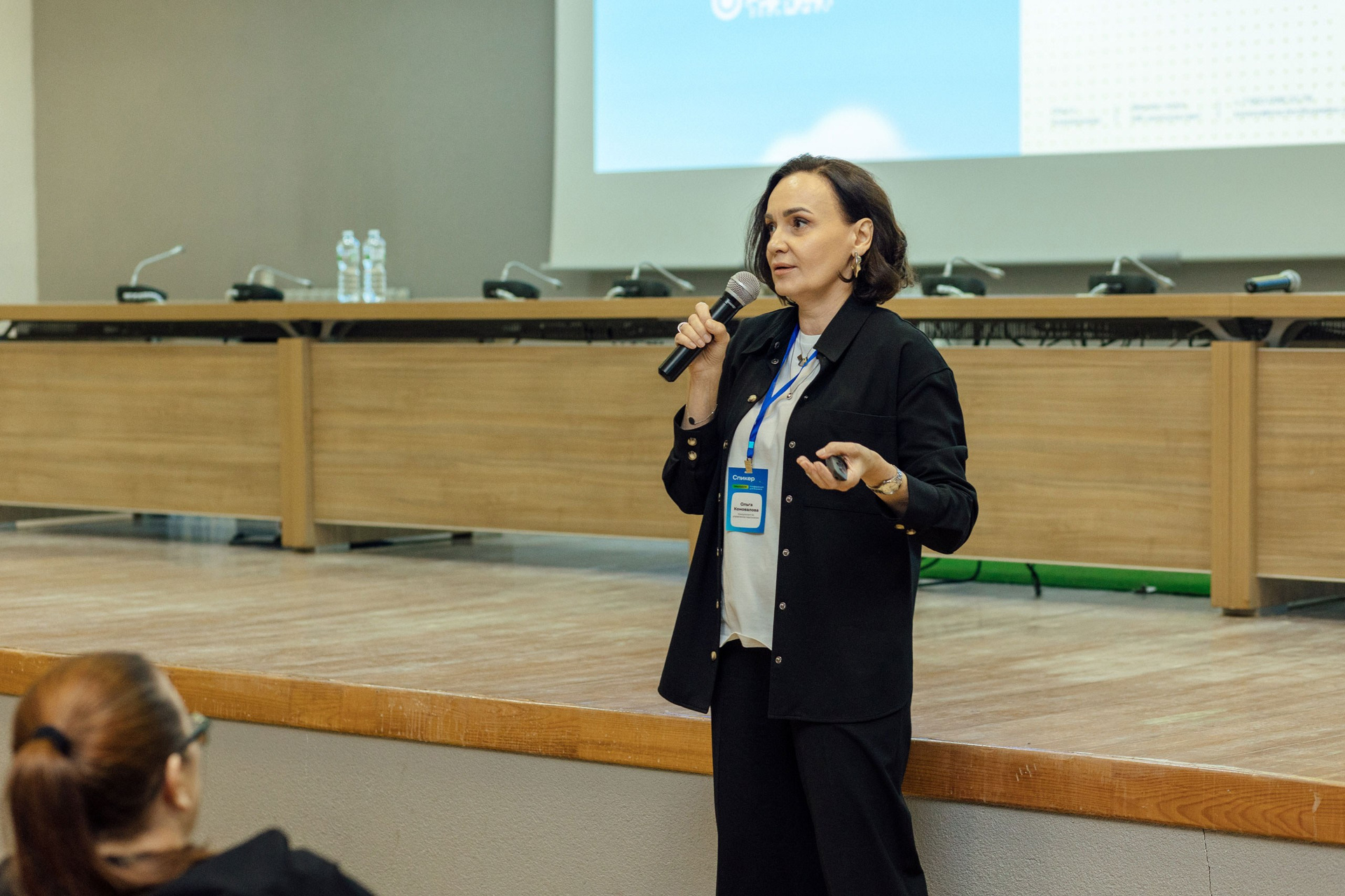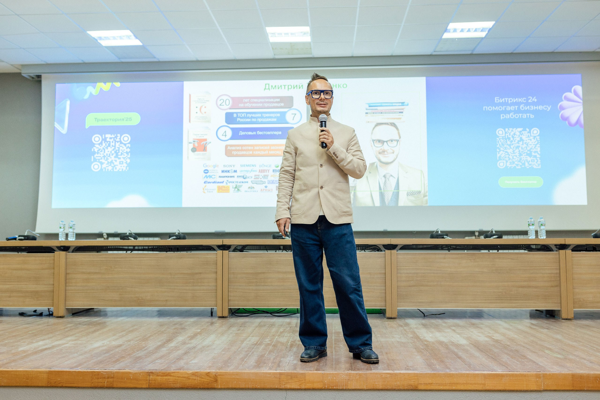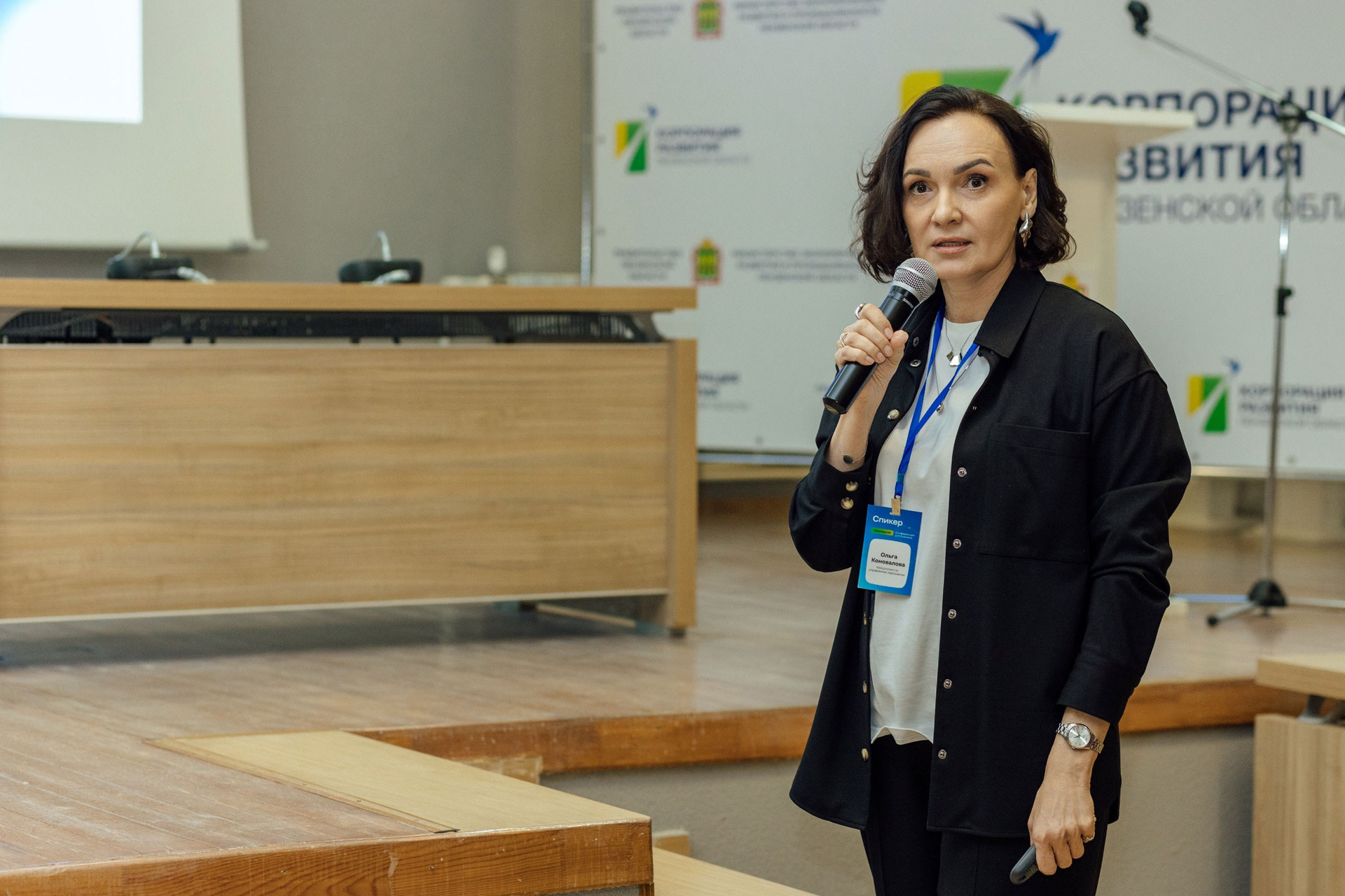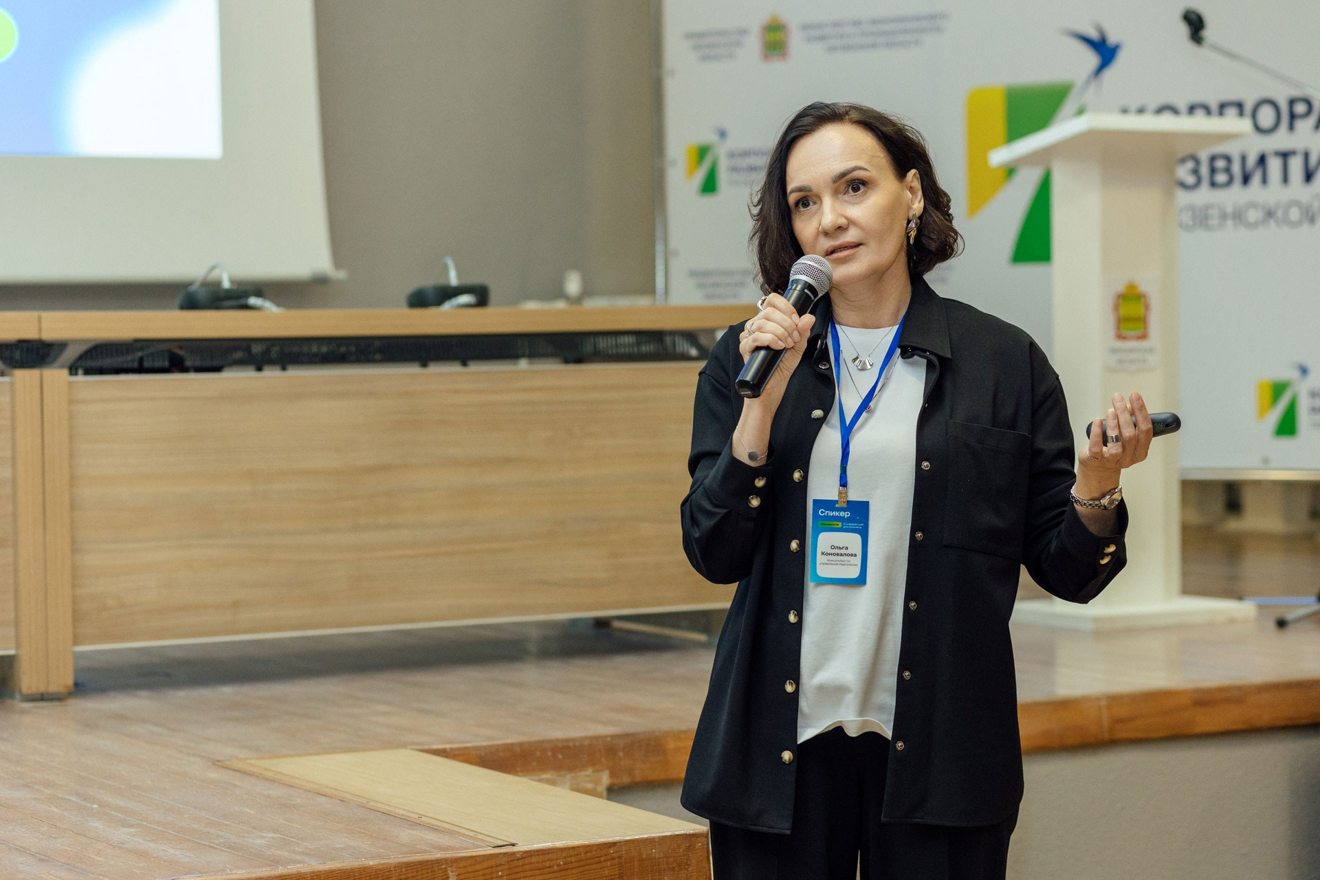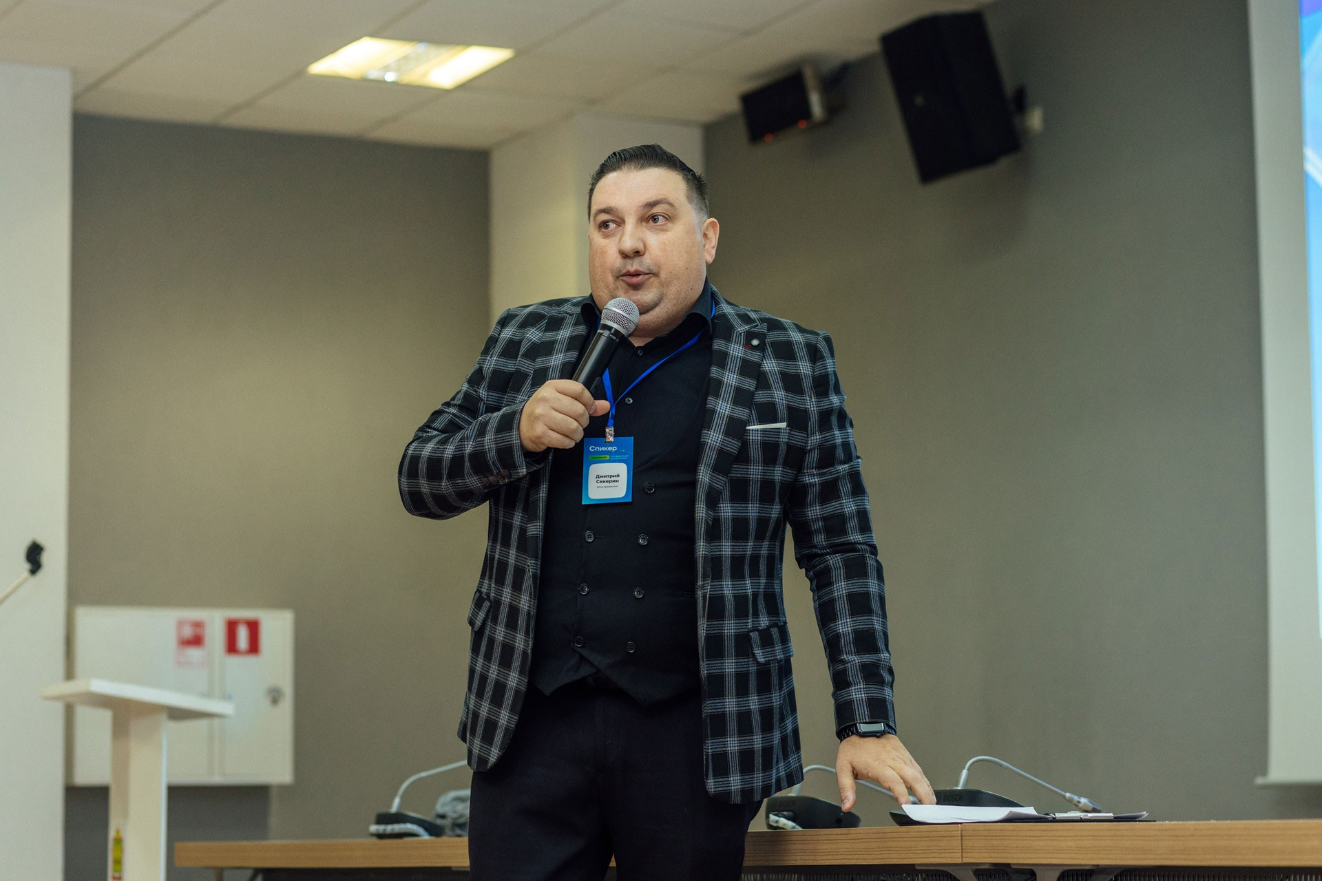 - фото спикера на фоне зала