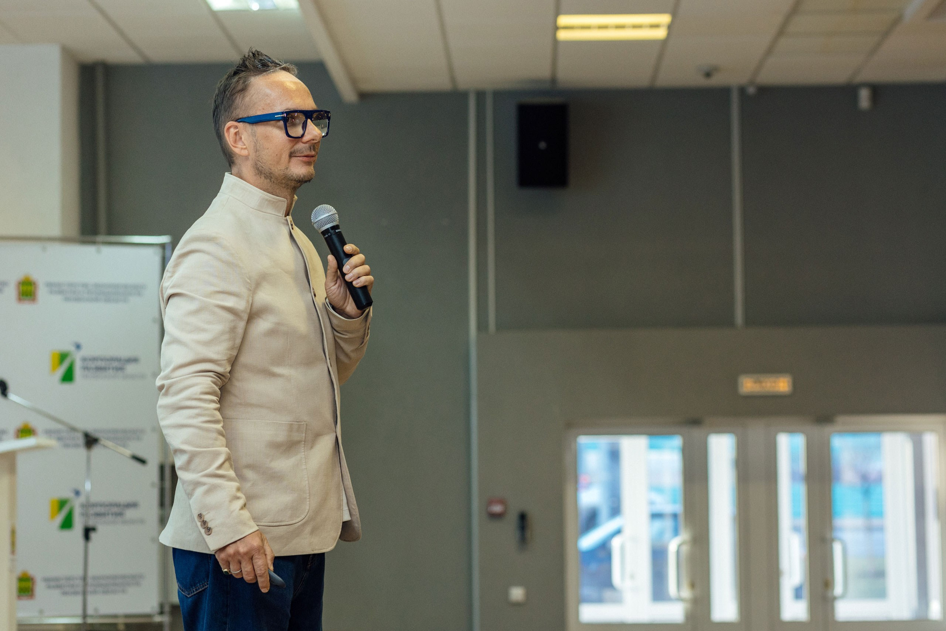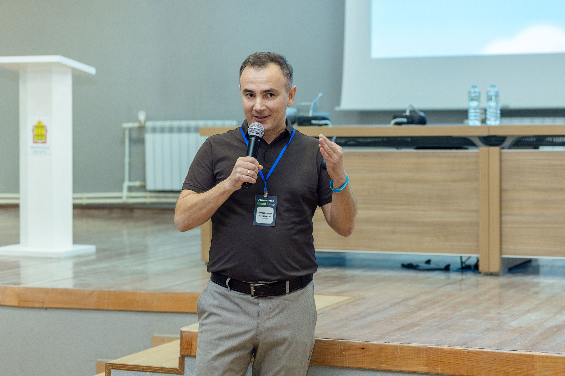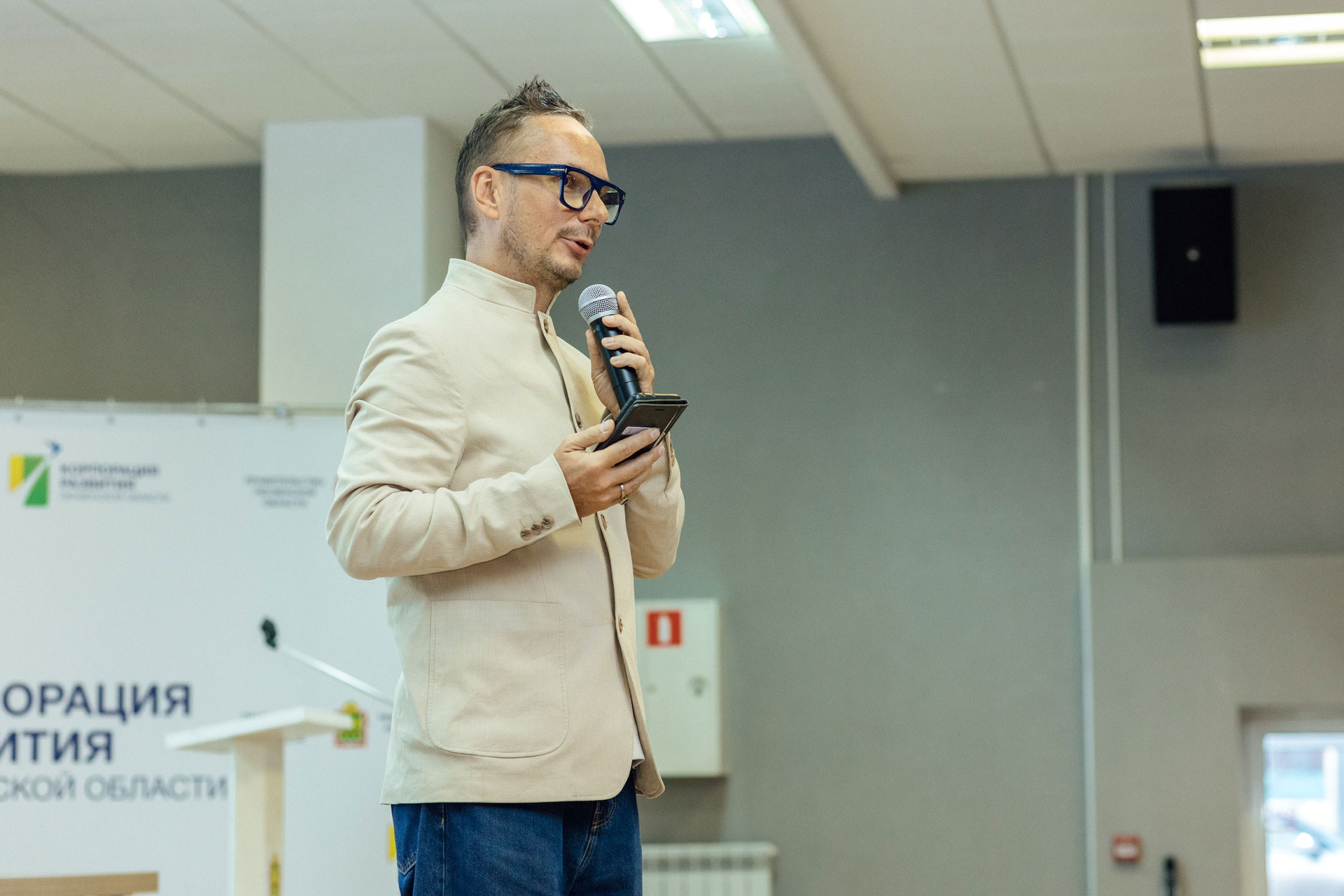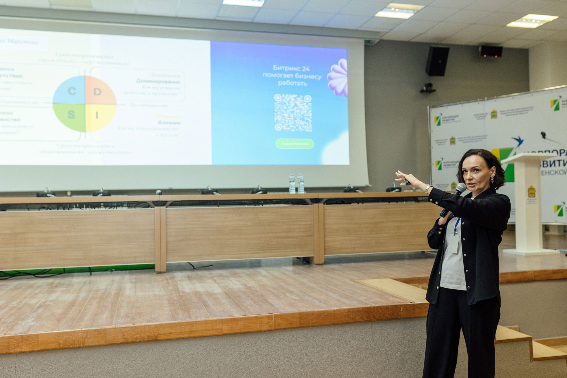 - фото спикера на фоне зала