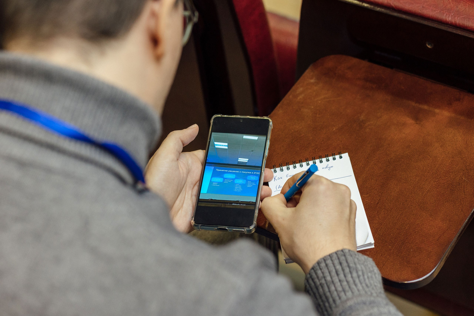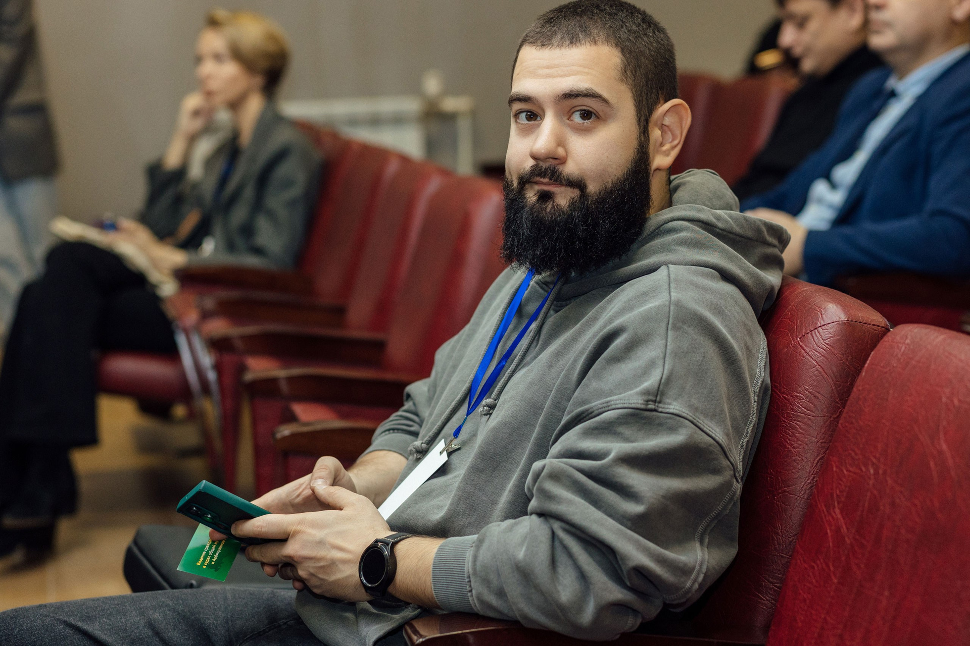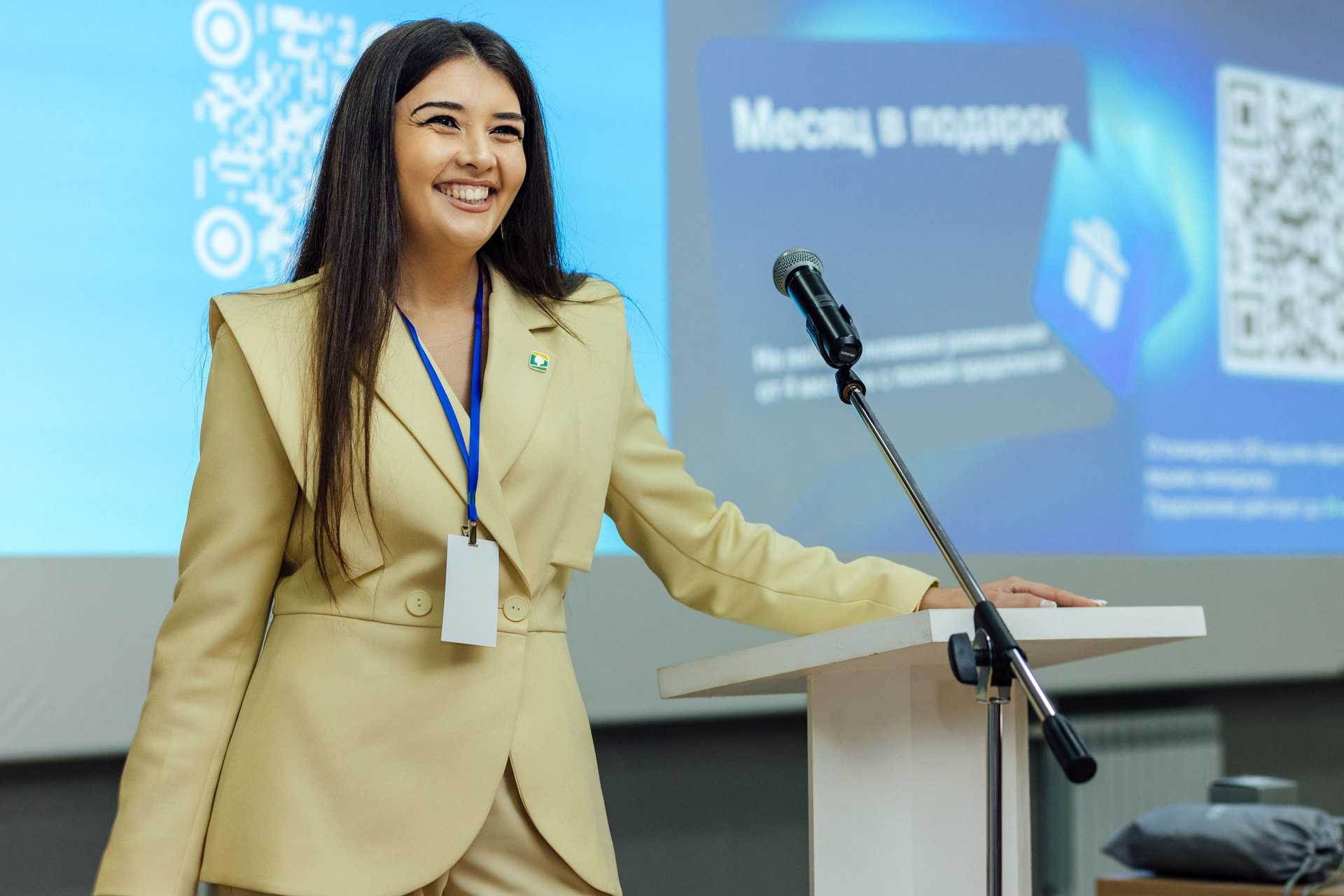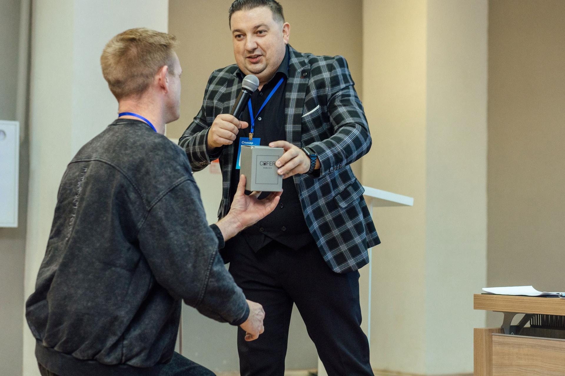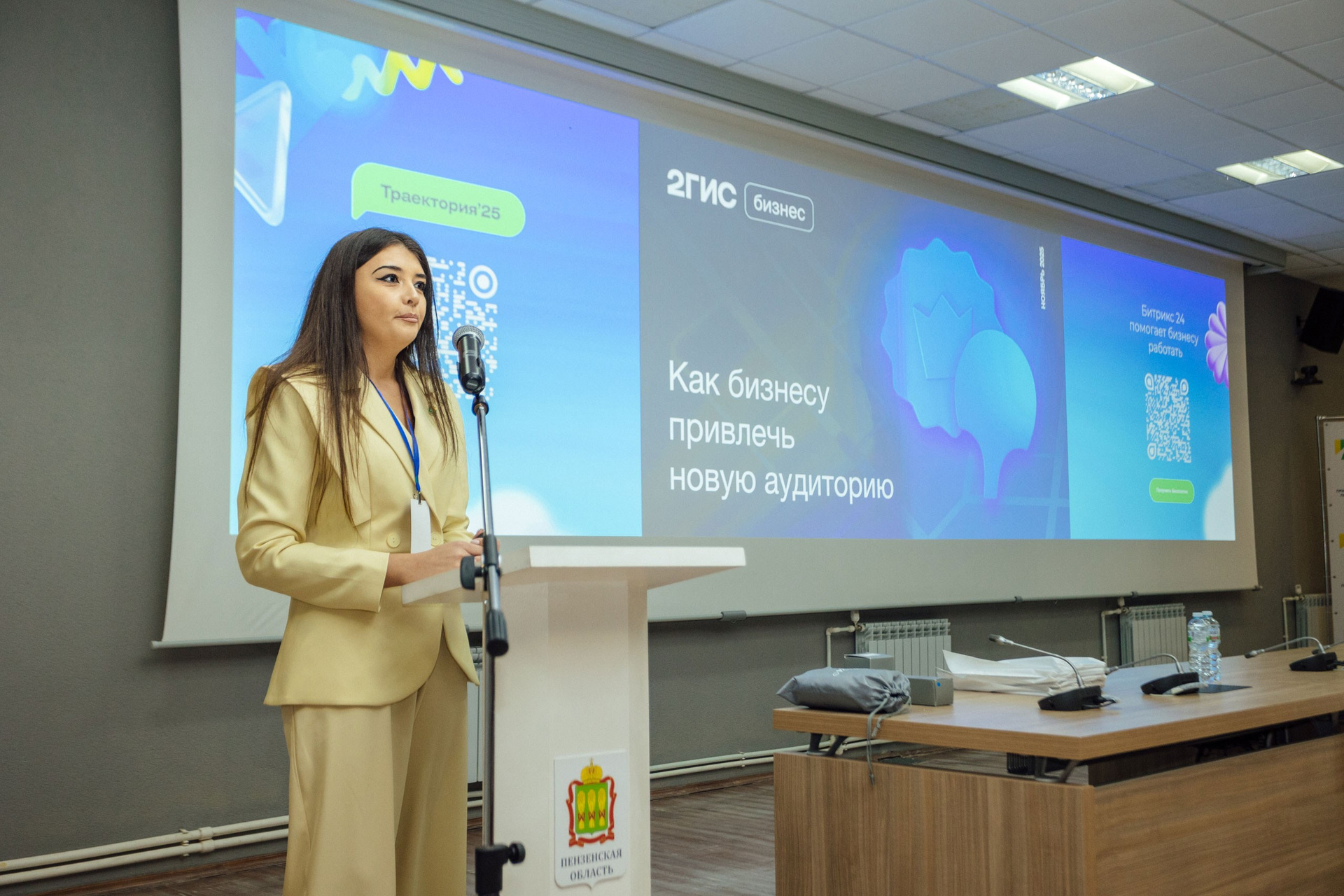 - фото спикера на фоне зала