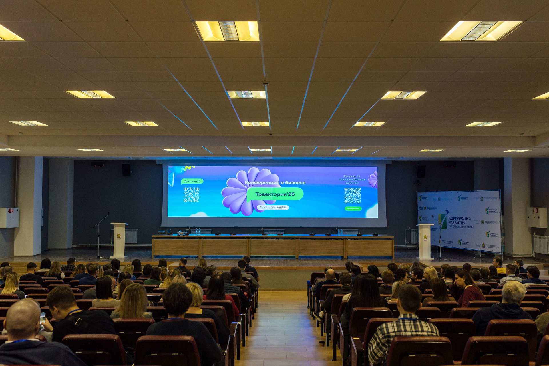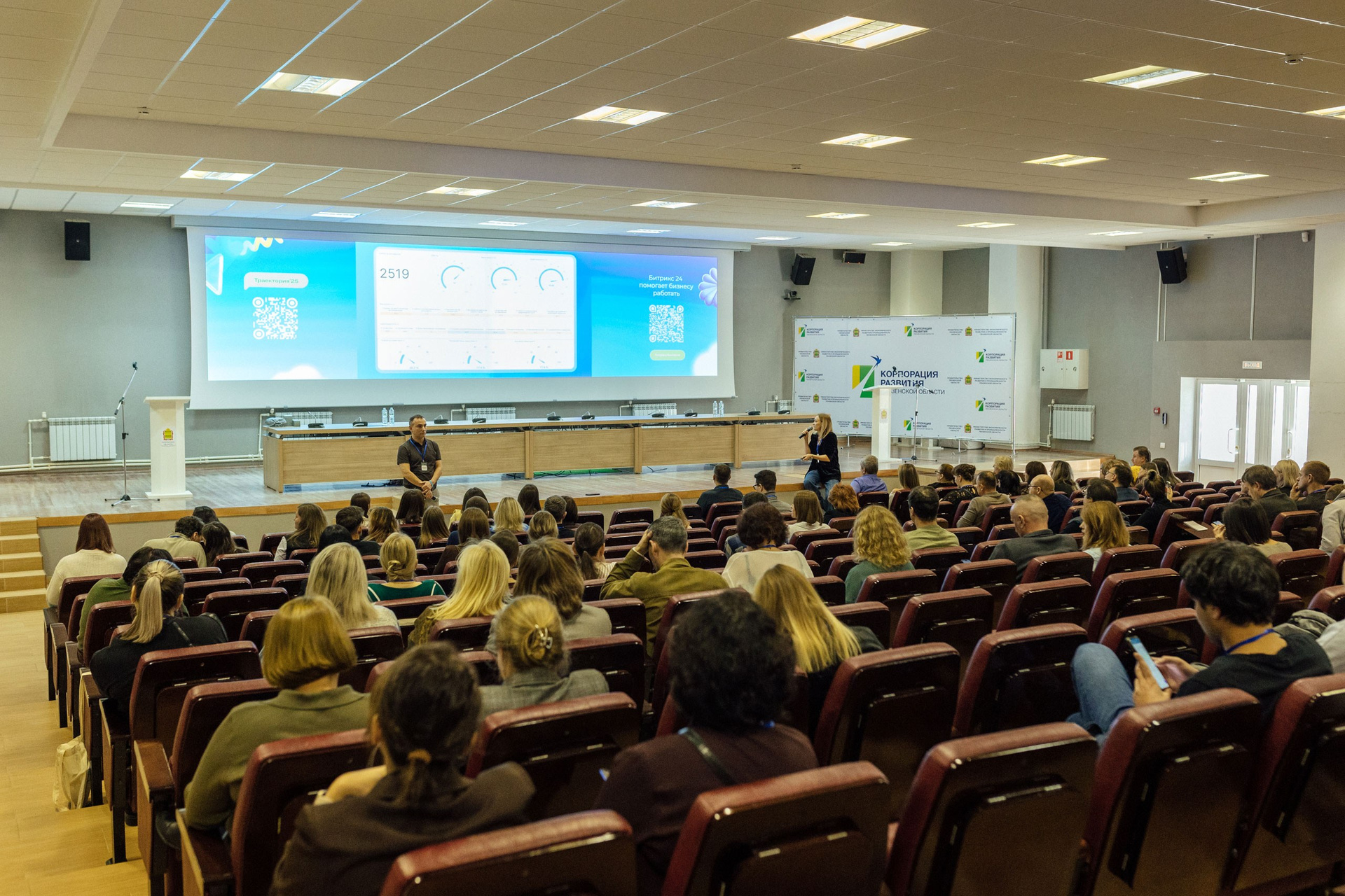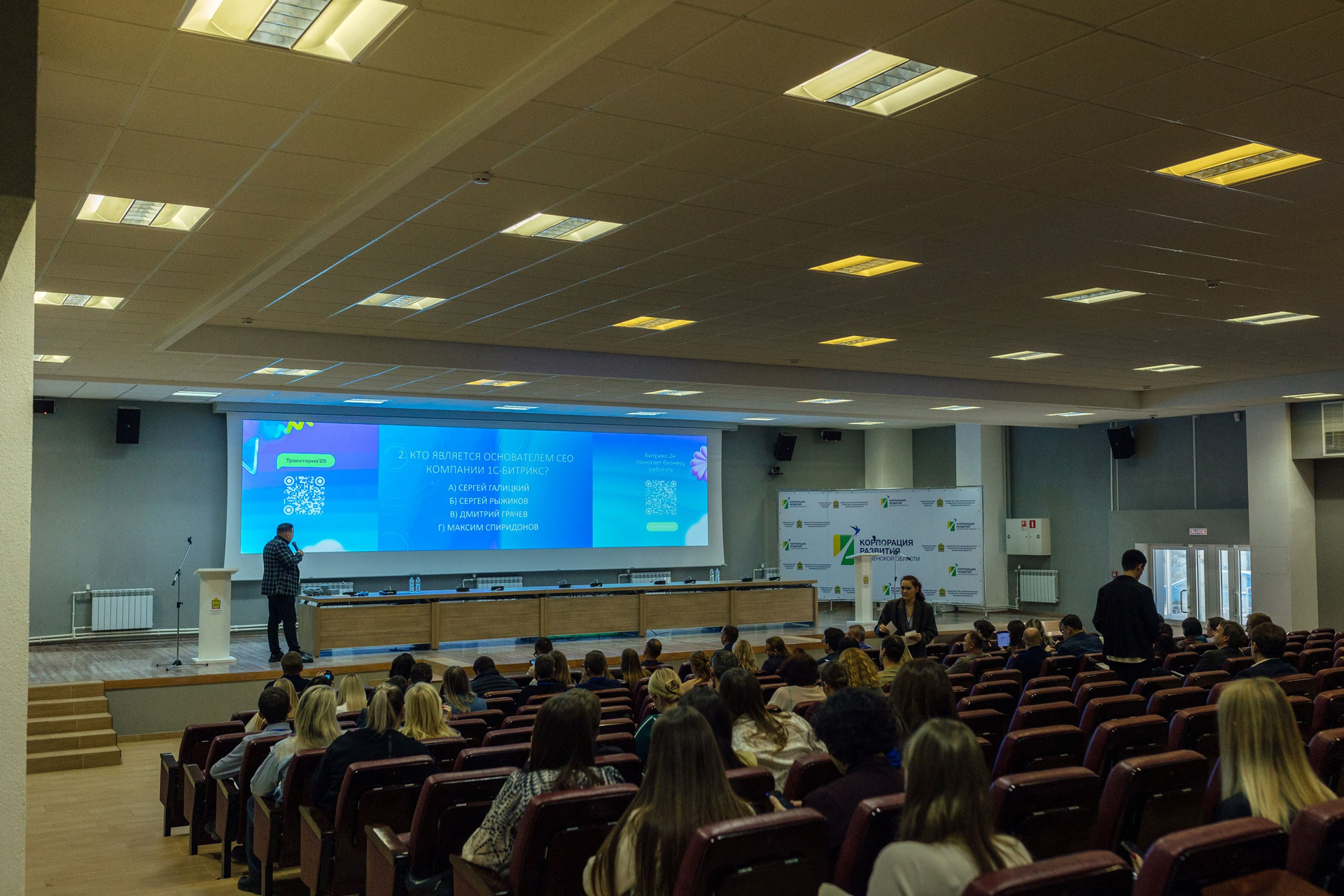 - широкоформатные кадры, демонстрирующие полную посадку зала. Ориентировочно полная посадка на 1-2 докладе.