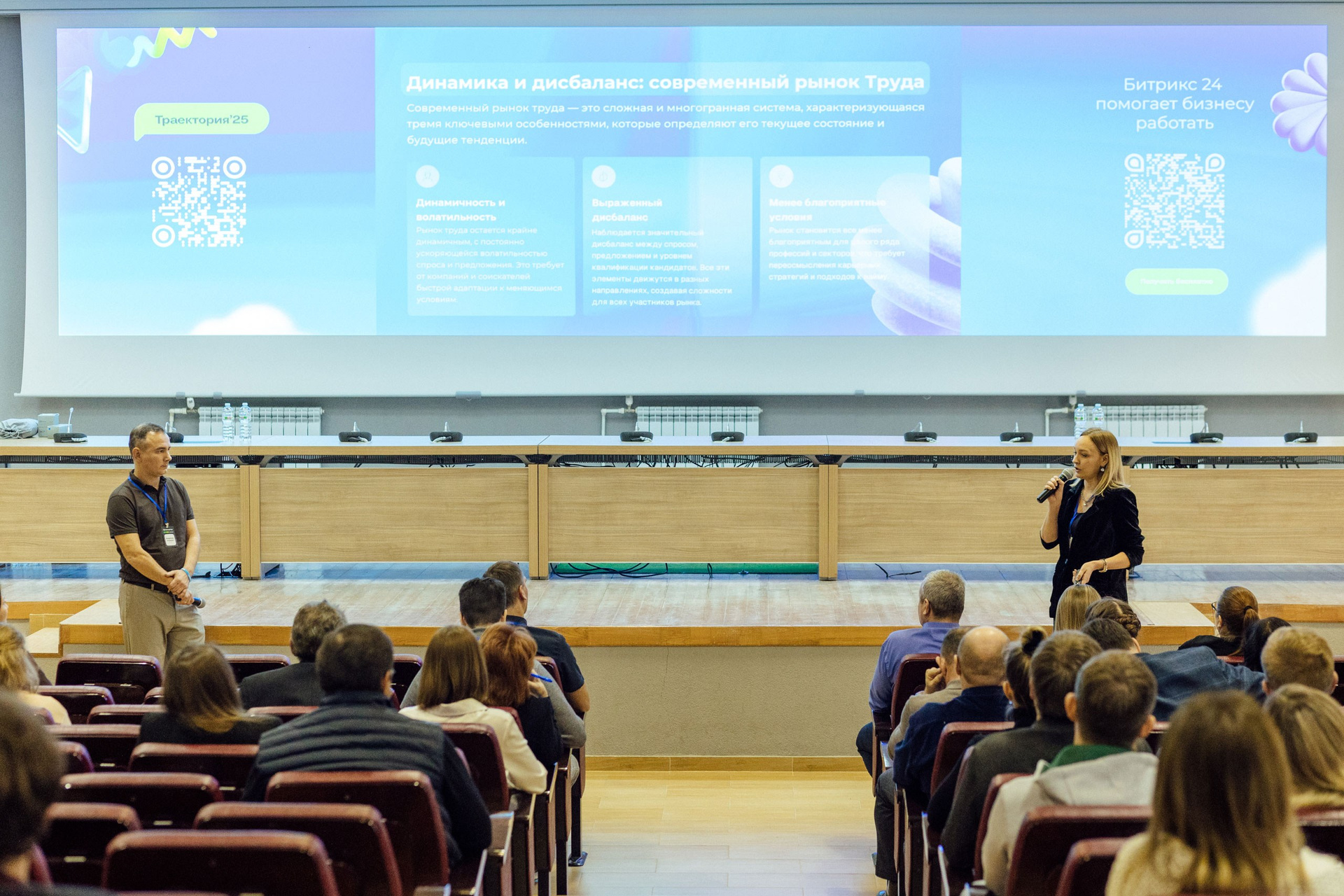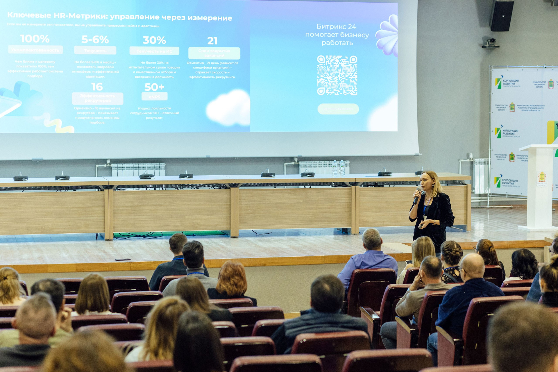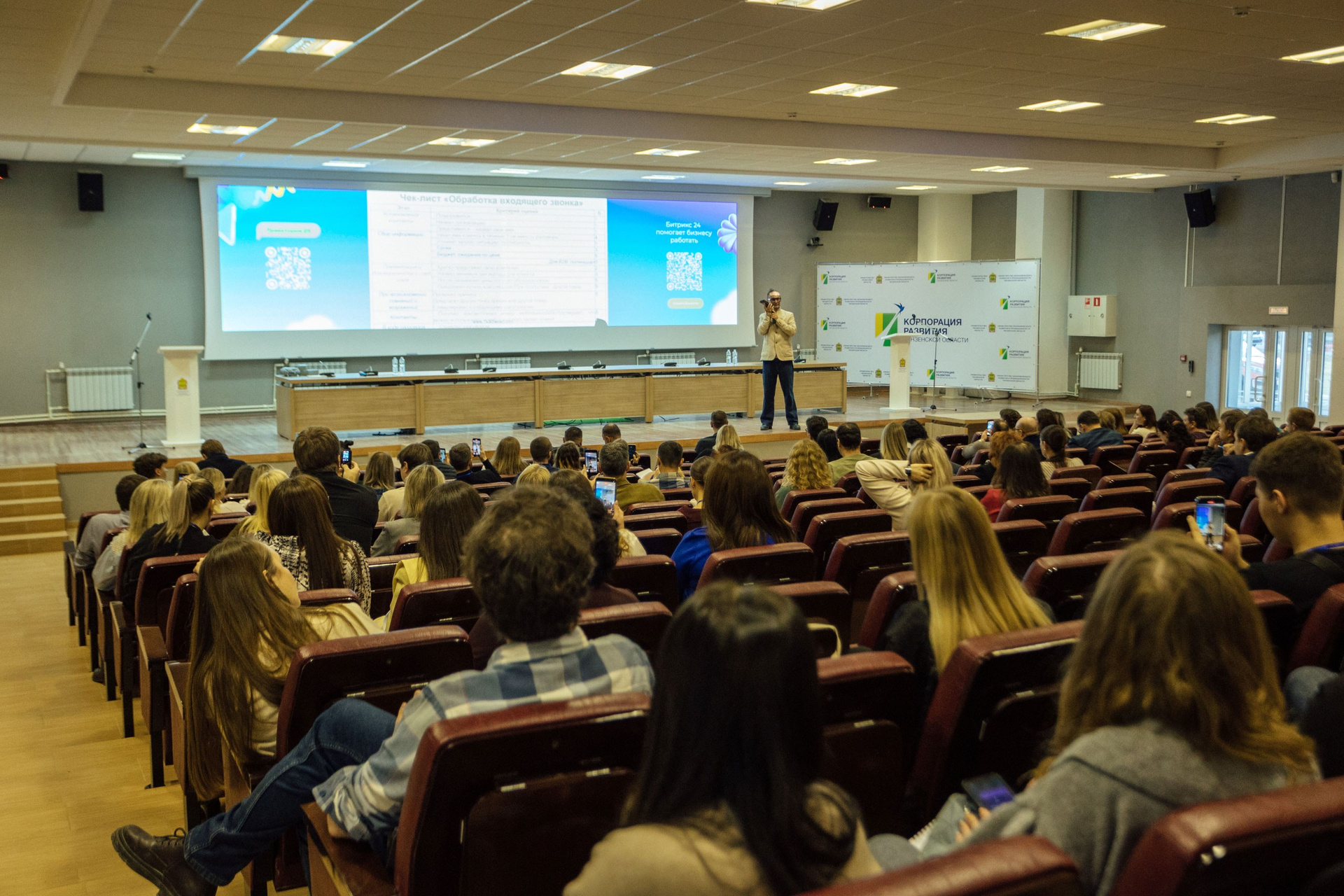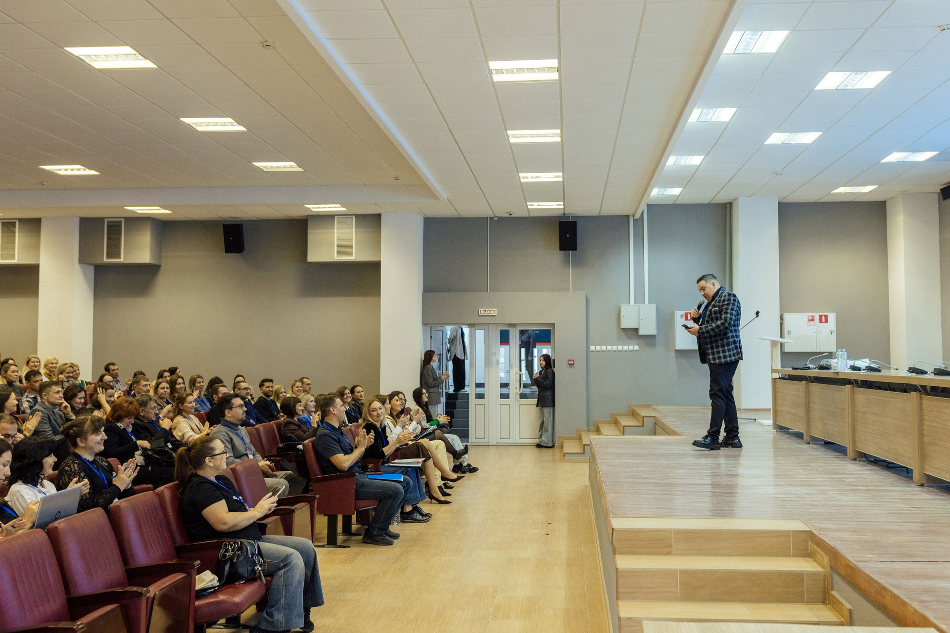 - широкоформатные кадры, демонстрирующие полную посадку зала. Ориентировочно полная посадка на 1-2 докладе.