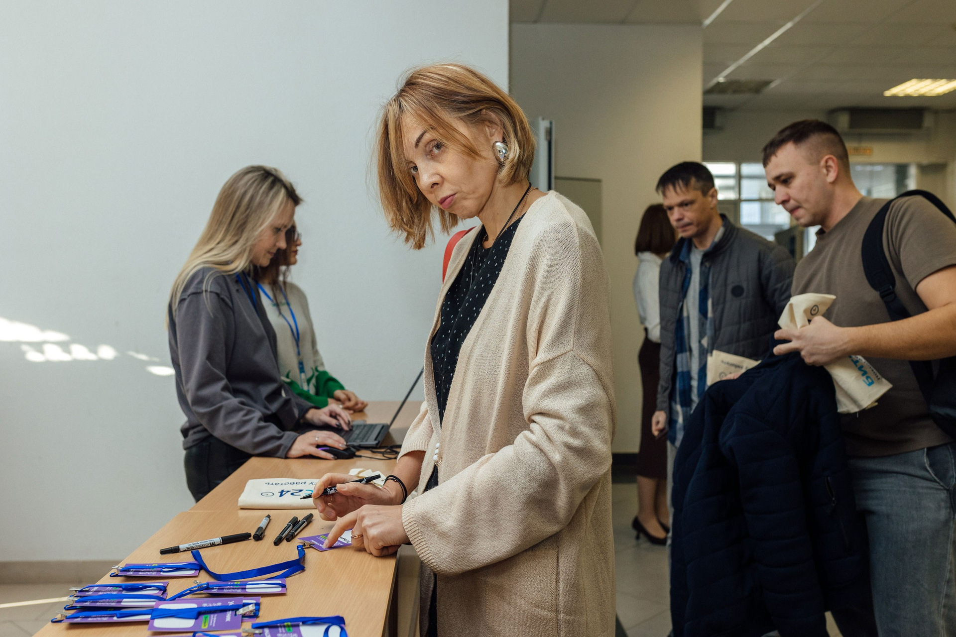- фото процесса регистрации участников.